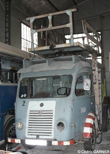 Les voitures échelles servaient pour la maintenance des lignes aériennes de contact (LAC) des tramways et trolleybus.Il est actuellement en cours de restauration dans notre hangar à Saint-Giniez.