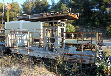 Wagon utilisé pour la maintenance des lignes aeriennes du tramways. La nacelle provient d'un Renault AHN3.